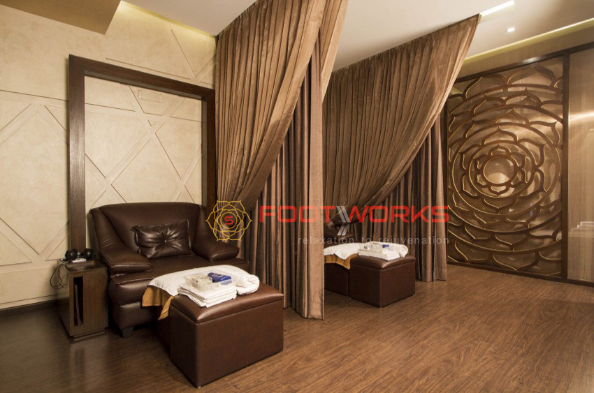 The Footworks Lounge in Koramangala, an upmarket residential & IT hub of Bangalore, is located on the main 80 ft. road. It has 8 luxury chairs, ergonomically designed, to help you feel relaxed & offer the best in stylish comfort and luxury.
